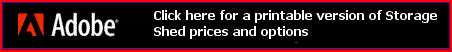 Lean-To Storage Shed *Price includes one 3’ walk through door & complete floor. 8’ Tall 9’ Tall 8’x8’ $1,779.00 $100.00 8’x10’ $2,223.00 $126.00 8’x12’ $2,668.00 $152.00 9’x9’ $2,250.00 $129.00 9’x10’ $2,500.00 $143.00 10’x12’ $2,870.00 $191.00 |